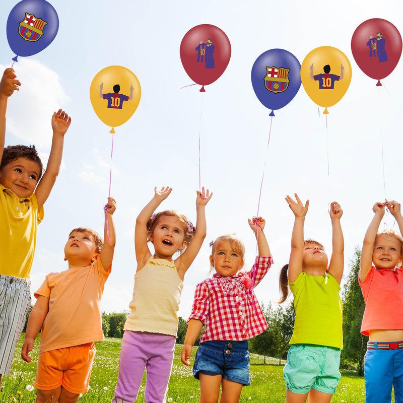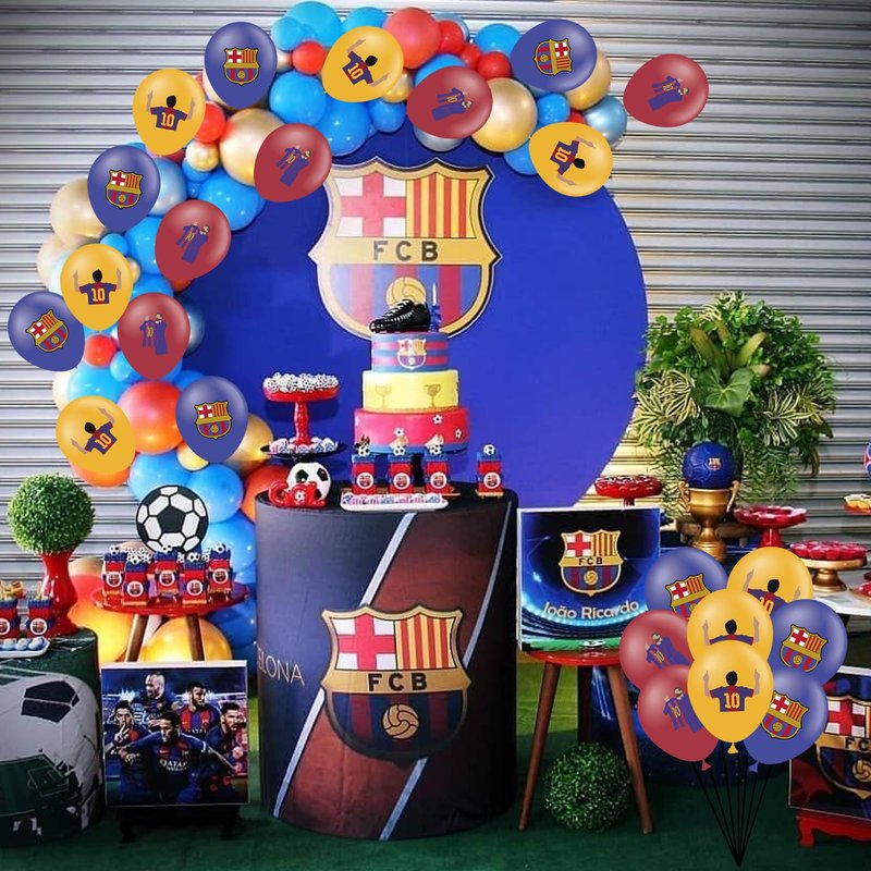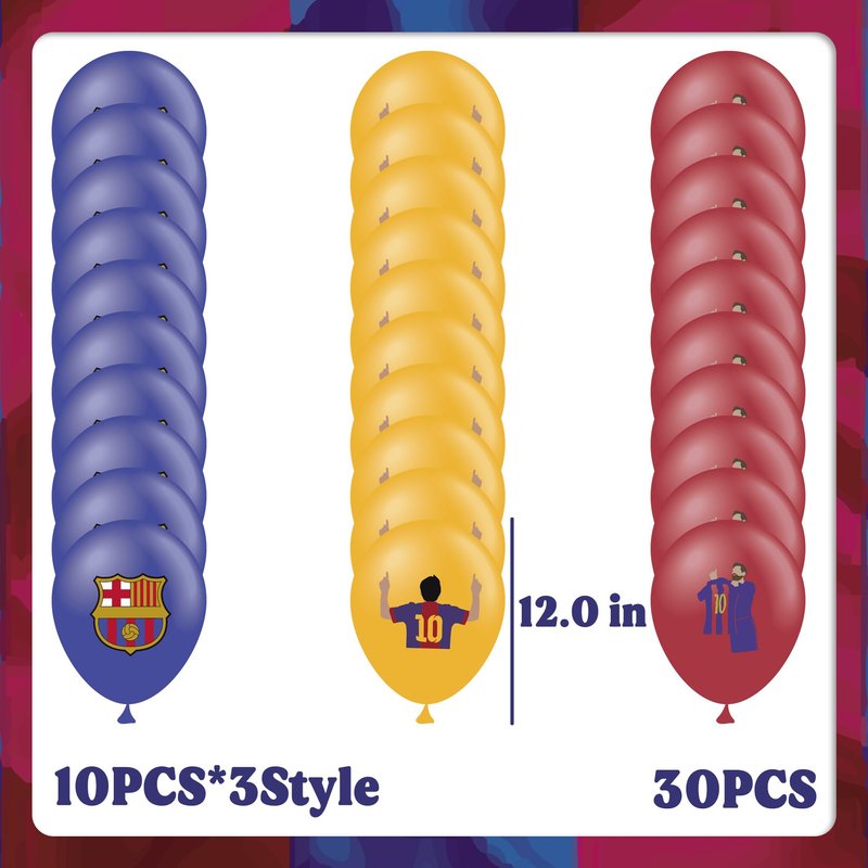 - [Barcelona Party Balloons]: 30pcs Barcelona theme latex balloons (10 for each style), this will be a favorite party balloon for fans of Barcelona and Messi
