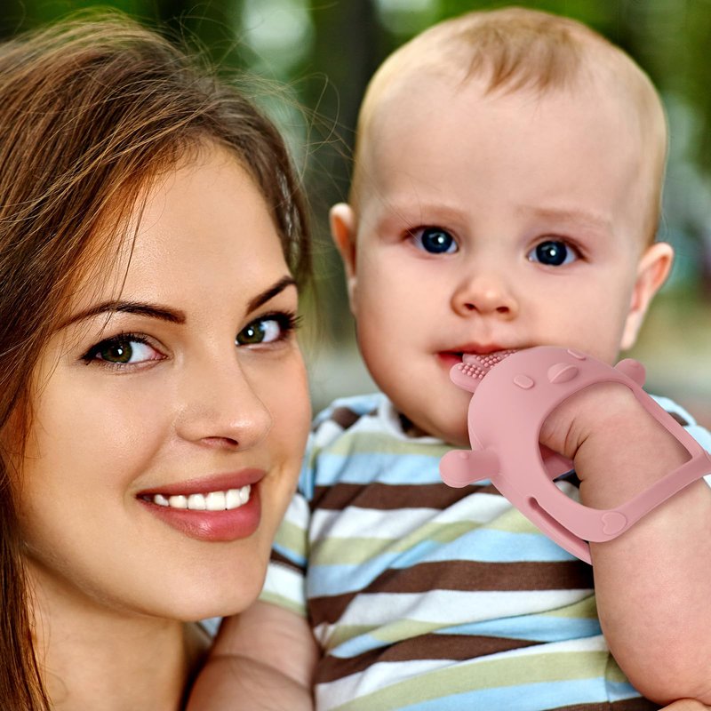 ● The baby silicone teether is designed for ages 3+months , Soft and flexible silicone material is comfortable on baby’s gums and silicone touch point privide the teething pain relief and satisfy different bite experiences.