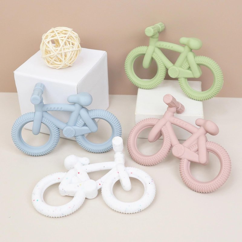 Socub baby teether toys in bike shape are made of food grade silicone that is BPA free.