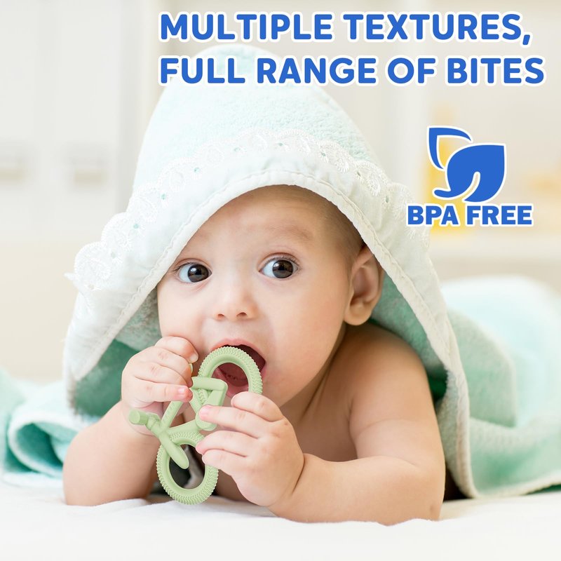 - Comfort and Safety: Made of food grade silicone that is BPA free. Meets ASTM safety requirements. Soft and textured material is gentle on gums, they're safe for your little one to chew on.