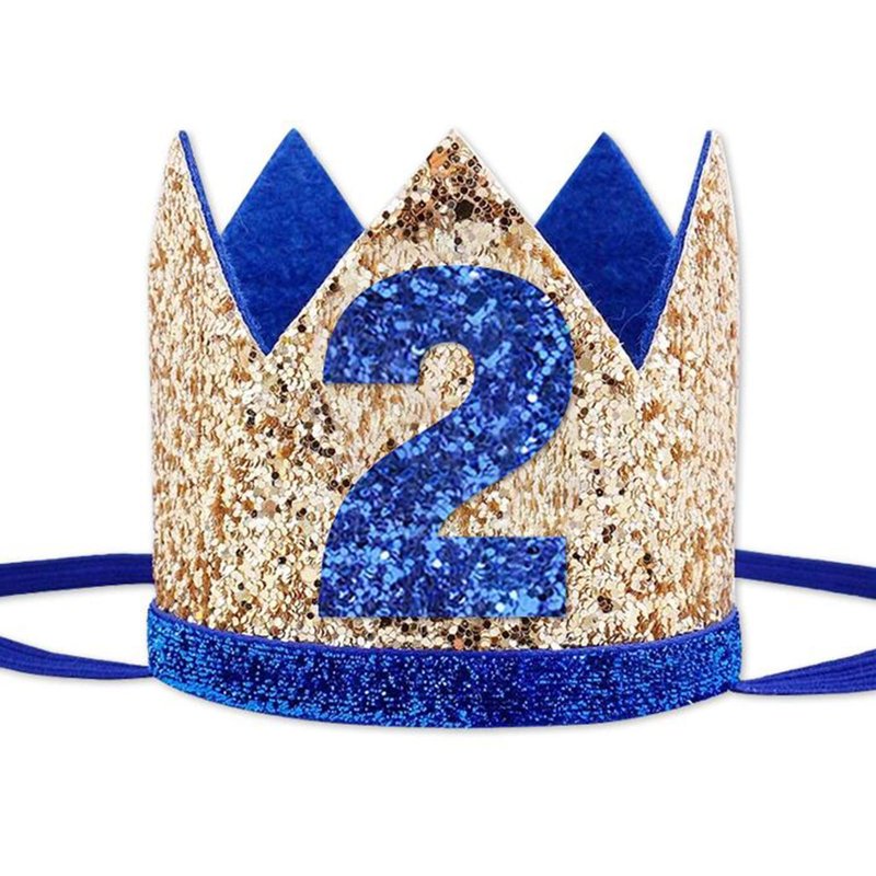 Socub Birthday Hat, birthday party hat, Birthday Crown Headbands for Baby Boy 2nd Birthday Party Supplies, Golden Blue 2