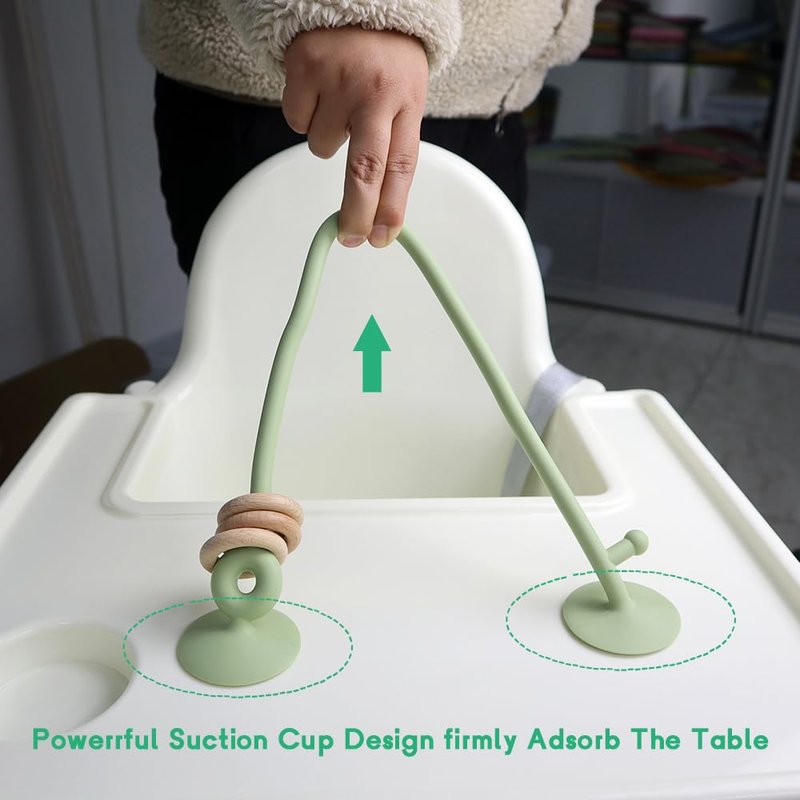 - Innovative Design- Thanks to the powerful suction cup design, our suction cup toys can firmly attach to children's high chairs, smooth tabletops, bathtubs, windows, and more. The roller coaster-like design allows babies to move the wooden ring from end to end. The collision of the wooden rings produces crisp sounds, providing a great texture for exploration while promoting early educational learning and keeping babies engaged and happy.