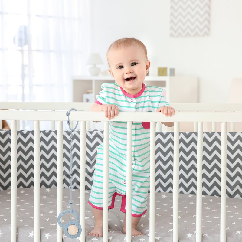 - Safe and Soothing: Made of food grade silicone that is BPA free. Meets ASTM safety requirements. This wrist rattle with raised textures help soothe and massage sore gums, making it a must-have teething toy for babies 3 months and up.