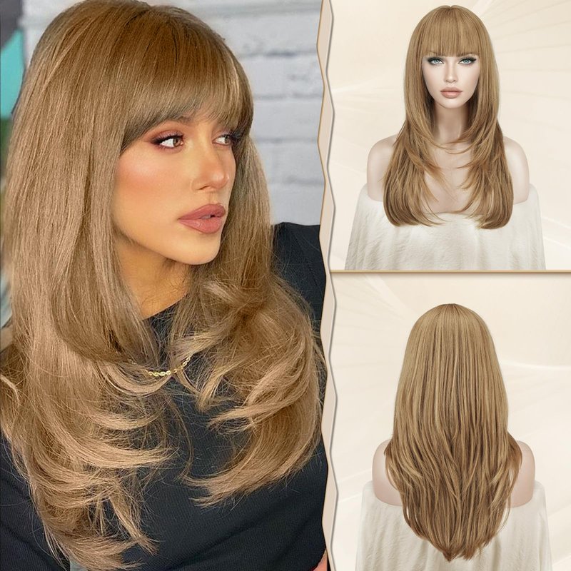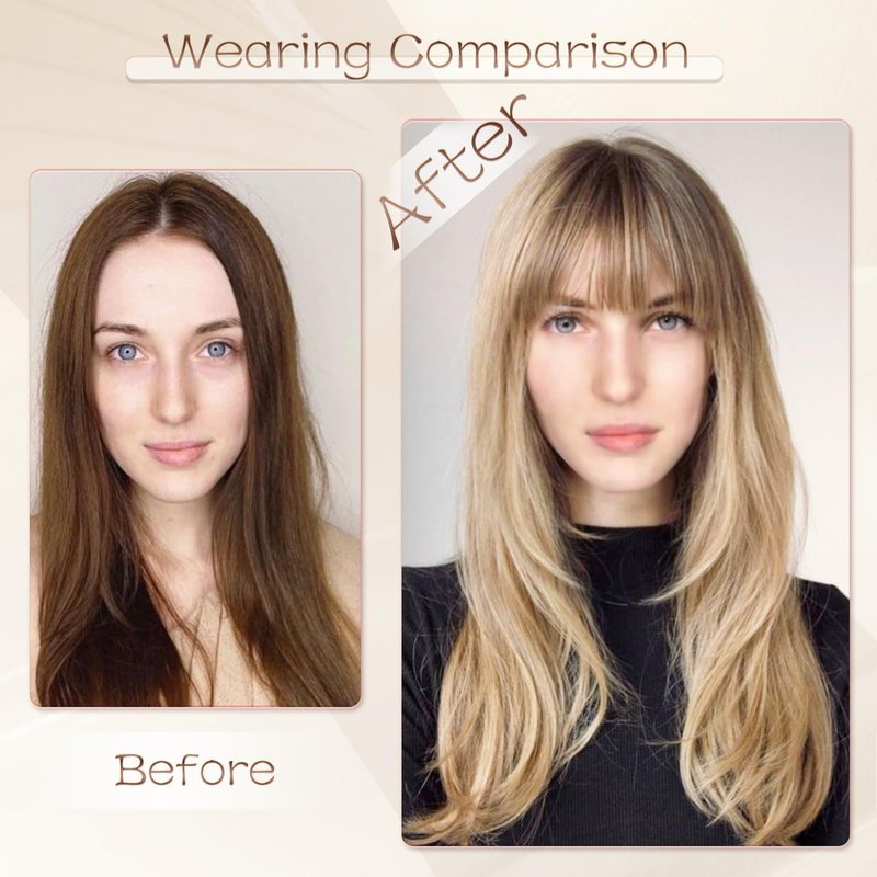 - Bright Layered Design: Soft and fluffy women long synthetic wig with wavy ends can be worn not only to hide the hairline and increase hair volume, but the layered design on both sides can also correct different facial contours. Let you exude a natural charm. Smooth and exquisite design long wigs for women can be trimmed or woven at will for various hairstyles. Change more styles