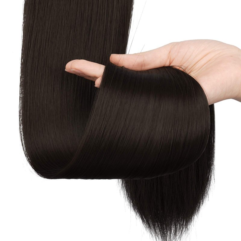 SOFEIYAN Long Straight Ponytail Extension 24 inch Wrap Around Ponytail Synthetic Hair Extensions Clip in Ponytail Hairpiece for Women, Medium Brown