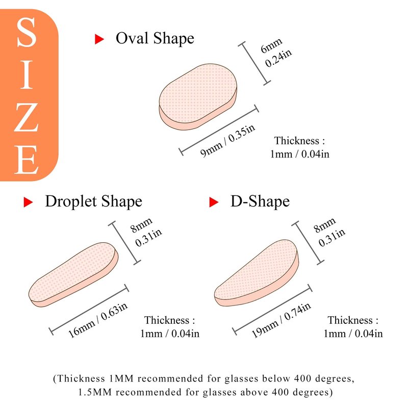 - 【Multiple Options】We have 3 kinds of sponge glasses nose pads for choice , including oval, D- shaped and teardrop nose pads, two colors(black and beige). Two thicknesses,the thin one is 1mm,the thick one is 1.5mm. You can also stick 1 or more nose pads together to get a thicker nose pad according to your needs. It is convenient for you to use it according to different glasses.