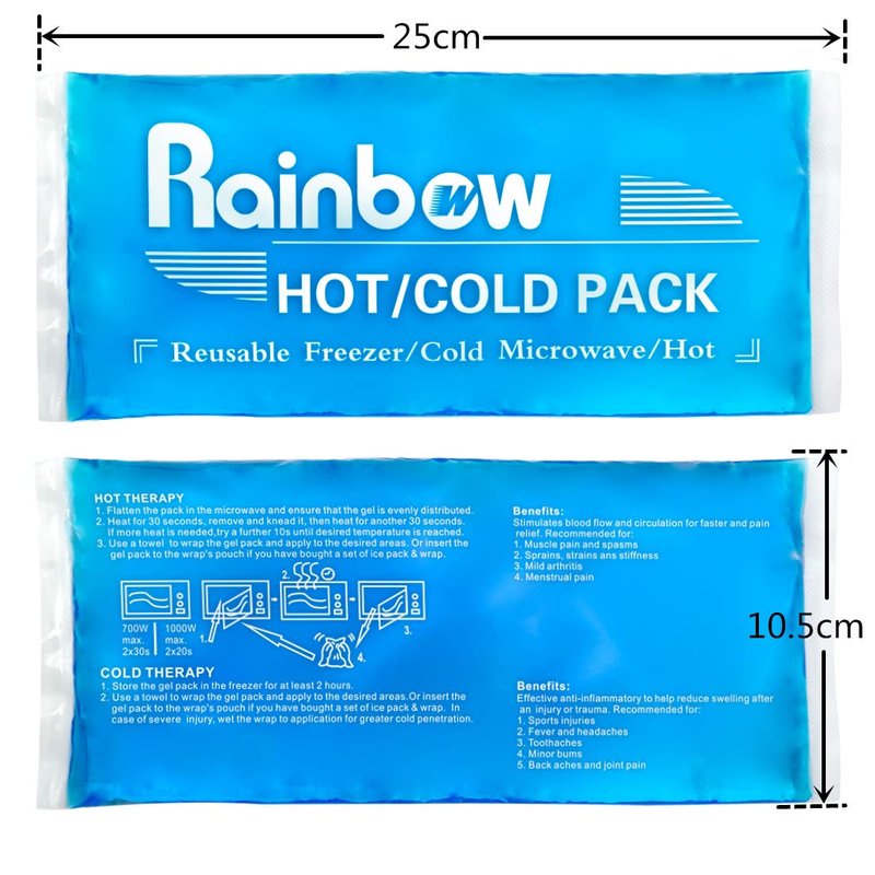 - 【Use Both Hot Cold】 - Soft gel ice pack can be used as ice or heat pack for physical therapy. Store in refrigerator or freezer for cold compress to help reduce swelling and pain. Heating in microwave or boiled water for hot compress to promote blood flow to help relief from strains, sprains and inflammation while promoting healing.