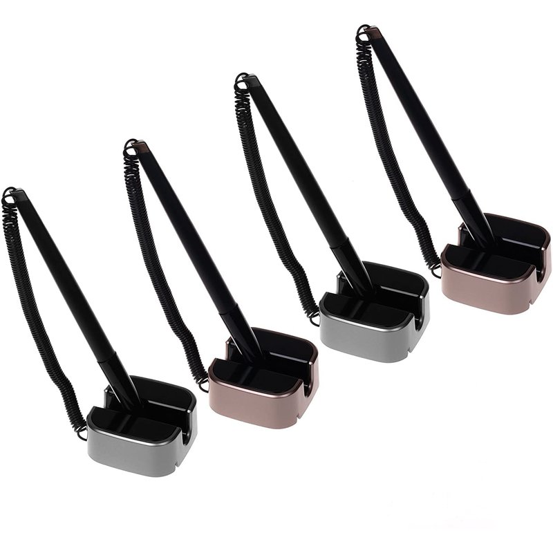 SoftRound 4 Pcs Desktop Gel Ink Pen / Counter Pens with Adhesive-Backed Base, Black Ink, Random Color