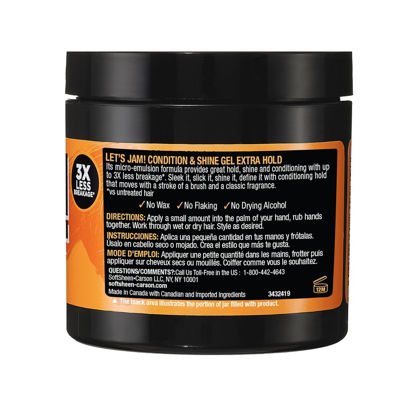 SoftSheen-Carson Let's Jam! Shining and Conditioning Hair Gel by Dark and Lovely, Extra Hold, All Hair Types, Styling Gel Great for Braiding, Twisting & Smooth Edges, Extra Hold, 4.4 oz