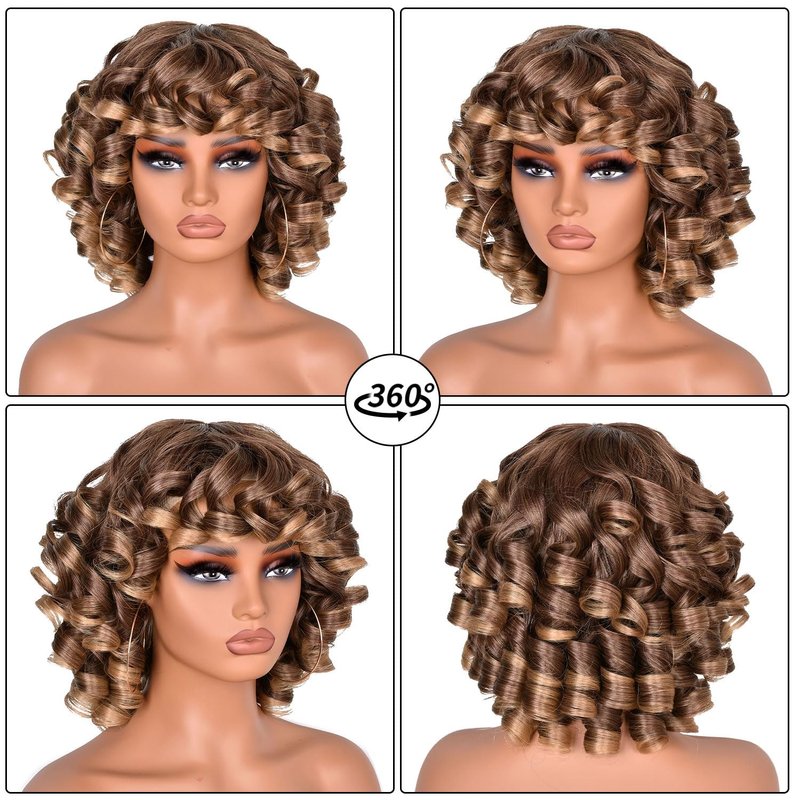 - Material: Short Curly Wigs for Black Women Afro Curly Wig with Bangs,Made of heat resistant fiber hair, which is durable, breathable, soft and natural. Suitable for long-term use.