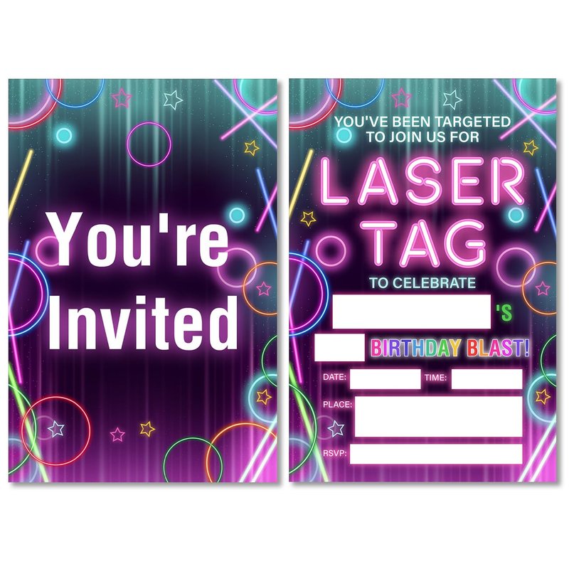 Soiceu Laser Tag Birthday Party Invitations with Envelopes Set of 20 Neon Laser Tag Birthday Party Invites Glow Laser Tag