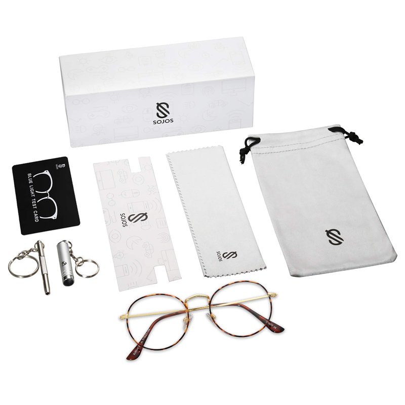 - GIFT IDEAS PACKAGE – Blue light blocking glasses*1, microfiber pouch*1, microfiber glasses cleaning cloth*1, blue light test electric torch*1, blue light test card*1, glasses kit*1, beautifully designed box*1. It is also a gift packaged ready, making it a wonderful yet practical gift idea for friends and family!