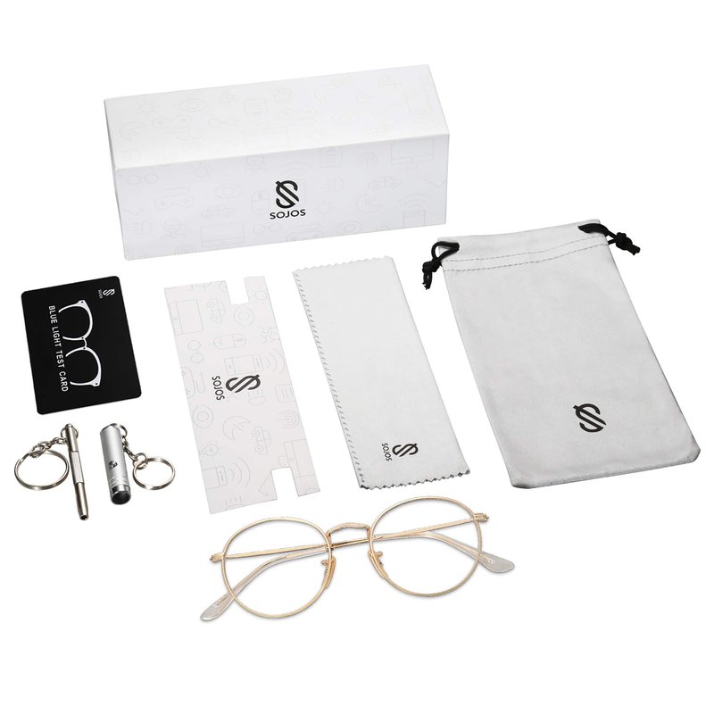 - GIFT IDEAS PACKAGE – Blue light blocking glasses*1, microfiber pouch*1, microfiber glasses cleaning cloth*1, blue light test electric torch*1, blue light test card*1, glasses kit*1, beautifully designed box*1. It is also a gift packaged ready, making it a wonderful yet practical gift idea for friends and family!