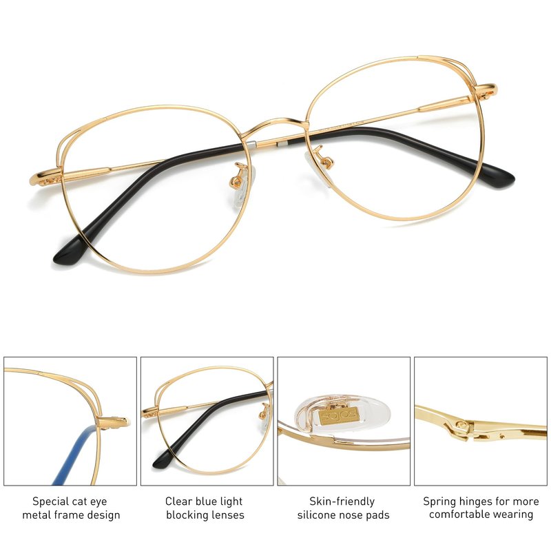 - COMFORTABLE TO WEAR – These cat eye blue light glasses for women are made of metal frames, anti-blue light lenses, soft silicone nose pads, and flexible spring hinges, all the details ensuring you a perfect performance. The soft silicone nose pads can adapt to different nose shapes. Reduce the burden on your bridge of the nose and create a new sense of fashion.