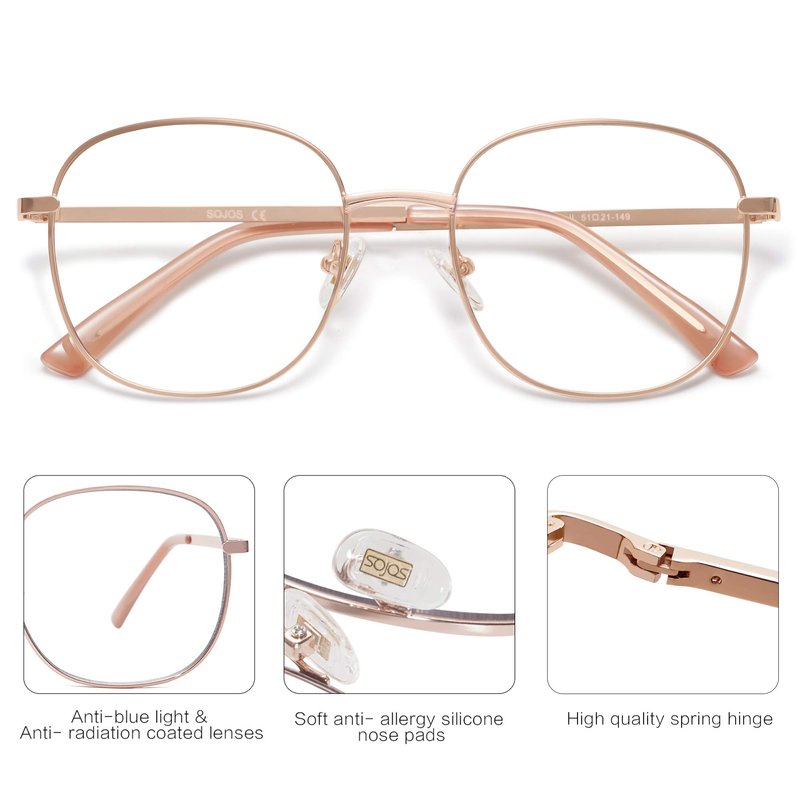 - HIGH-QUALITY MATERIALS – These SojoS round square blue light blocking glasses are made of reinforced stainless steel metal frames, anti-blue light lenses, soft silicone nose pads, and solid metal hinges. All the quality details will ensure you a perfect wearing experience.