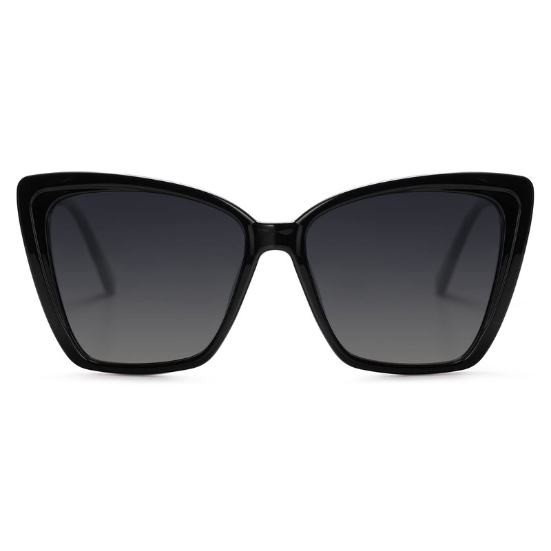 SOJOS Trendy Polarized Sunglasses For Women Retro Womens Oversized Square Cat Eye Sun Glasses UV Protection SJ2206 Black Frame Grey Lens