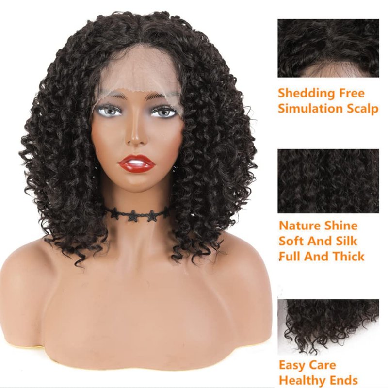 - Hair Material: Kinky Curly Synthetic Lace Front Wig is made of 100% high-quality high temperature fiber(up to 180°C/350°F). Lightweight and soft touching, just like natural hair