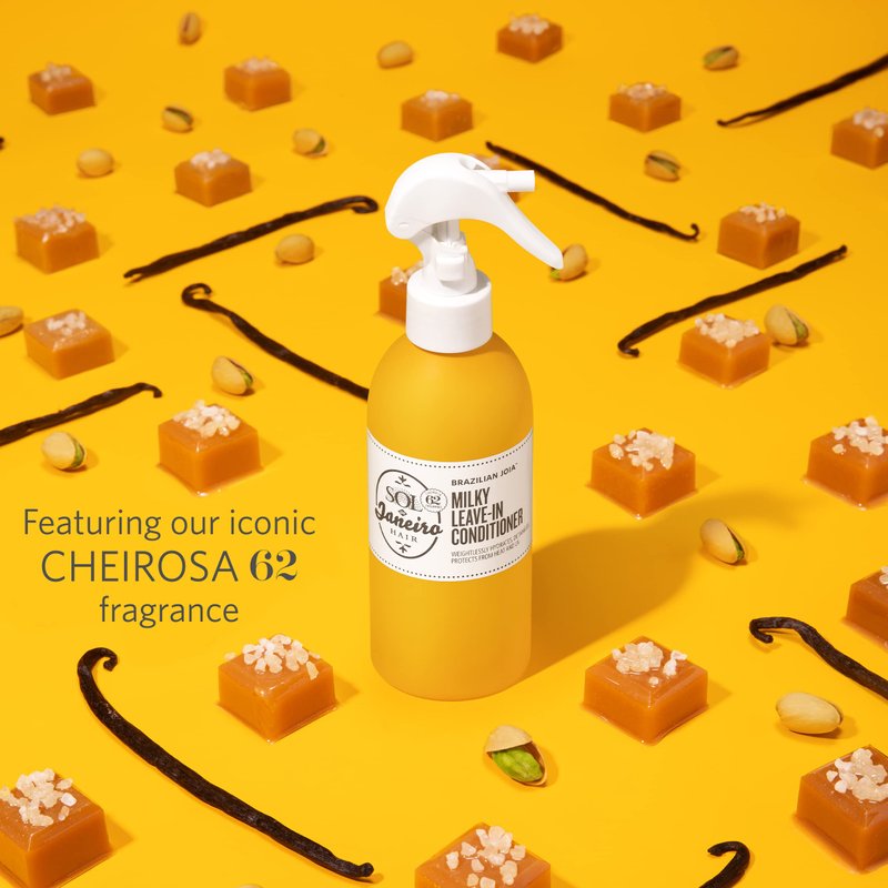 - A lightweight leave-in conditioner detangler spray that hydrates, detangles, and fights frizz for up to 72 hours while repairing split ends, protecting against heat damage, and adds UV protection leaving hair healthy-looking and soft. Infused with the Cheirosa ’62 fragrance of salted caramel, pistachio and vanilla.