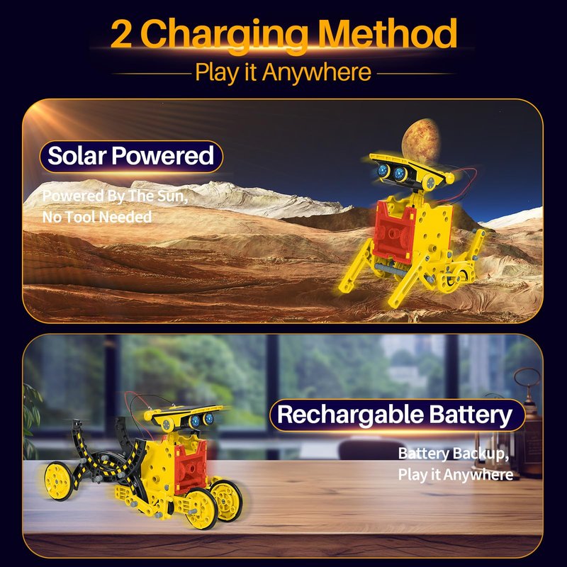- [Solar & Battery Powered] Solar powered by the sun or rechargable battery, it is environment-friendly energy drive motor.Including a solar power panel that collects solar heat energy into an electric energy drive motor for indoor or outdoor use.Regardless of the weather, kids can enjoy the fun of building toys.