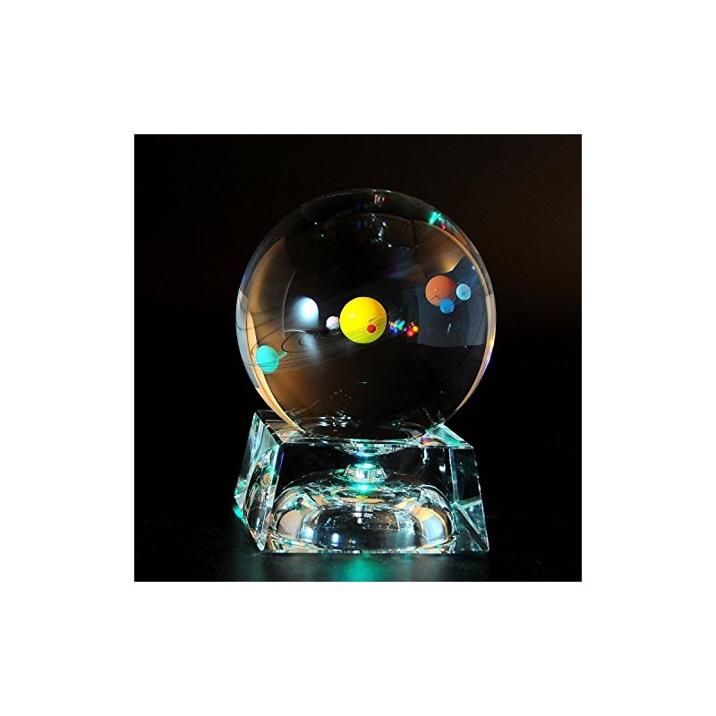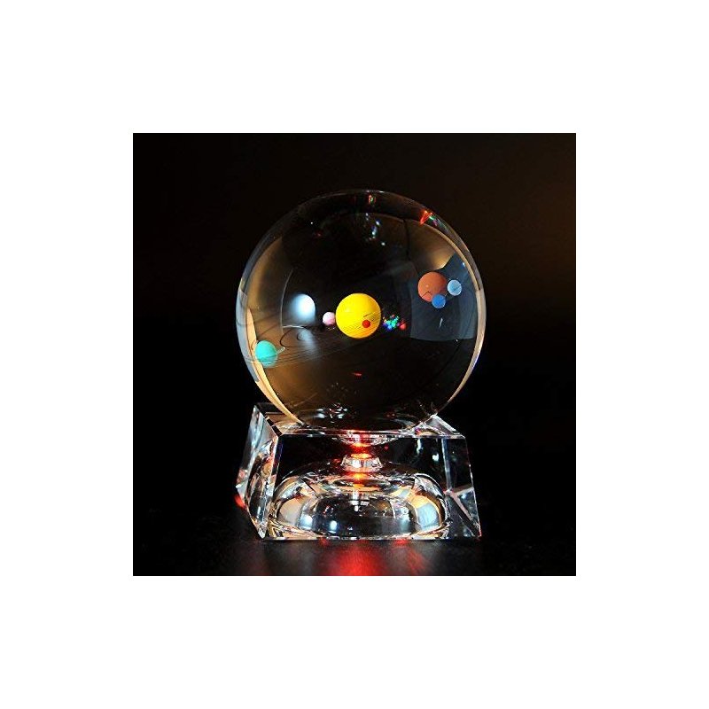 Solar System 3D Crystal Ball with LED lamp Base Clear 80mm (3.15 inch) Glass Birthday Gift for Kids, Teacher of Physics, Valentine's Day Gifts, Lover of The Universe, Boy/Friend, Classmates