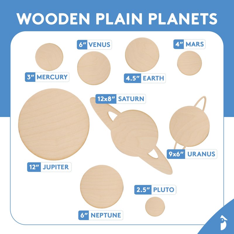 - QUALITY THAT'S OUT OF THIS WORLD - Our wood cutouts for crafts are made of high-quality birch plywood -⅛ inch thick & sturdy. It's smooth & crafting-ready, with a burnt edge for an authentic look. We've left this craft unfinished; give it your creative touch & add some detail for solar system decor that's uniquely you.