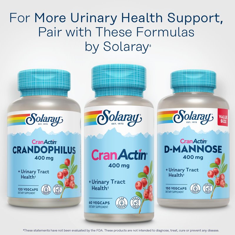 SOLARAY CranActin Cranberry Extract 400 mg - Cranberry Supplements for Women and Men - Bladder and Urinary Tract Health Support with Vitamin C - Vegan, 60-Day Guarantee, 60 Servings, 60 VegCaps