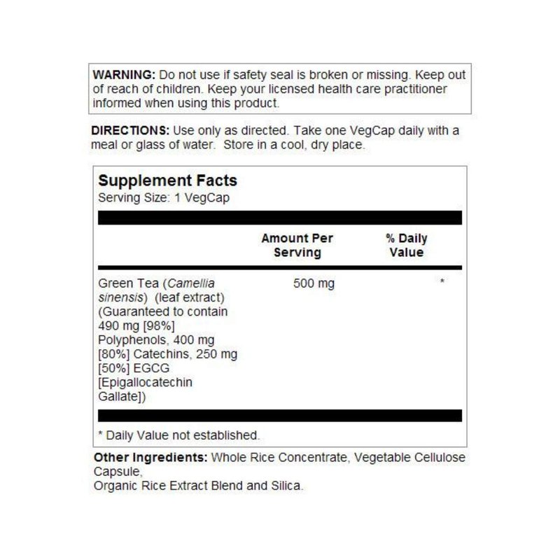 SOLARAY Guaranteed Potency Green Tea Leaf Extract Double Strength, Veg Cap (Btl-Plastic) 500mg | 30ct