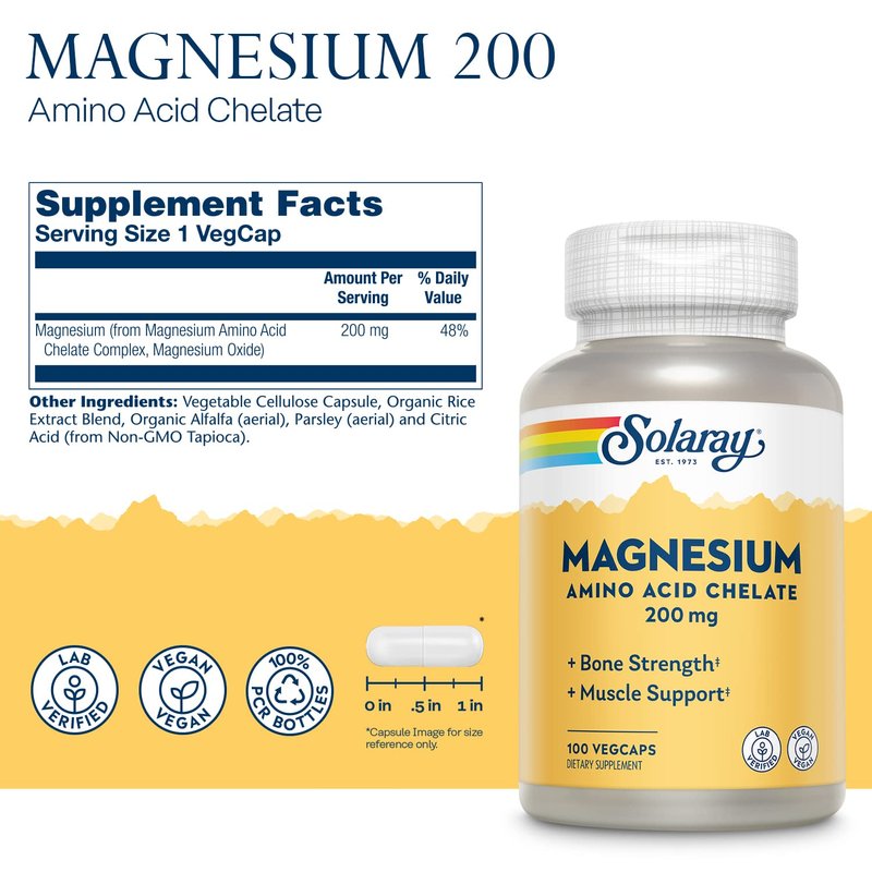 Solaray Magnesium Amino Acid Chelate, Healthy Bone Strength, Muscle, Nerve & Cardiovascular Support, 100 VegCaps