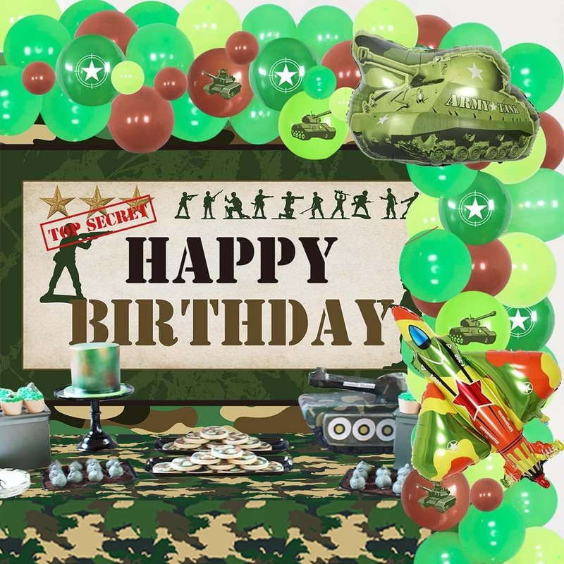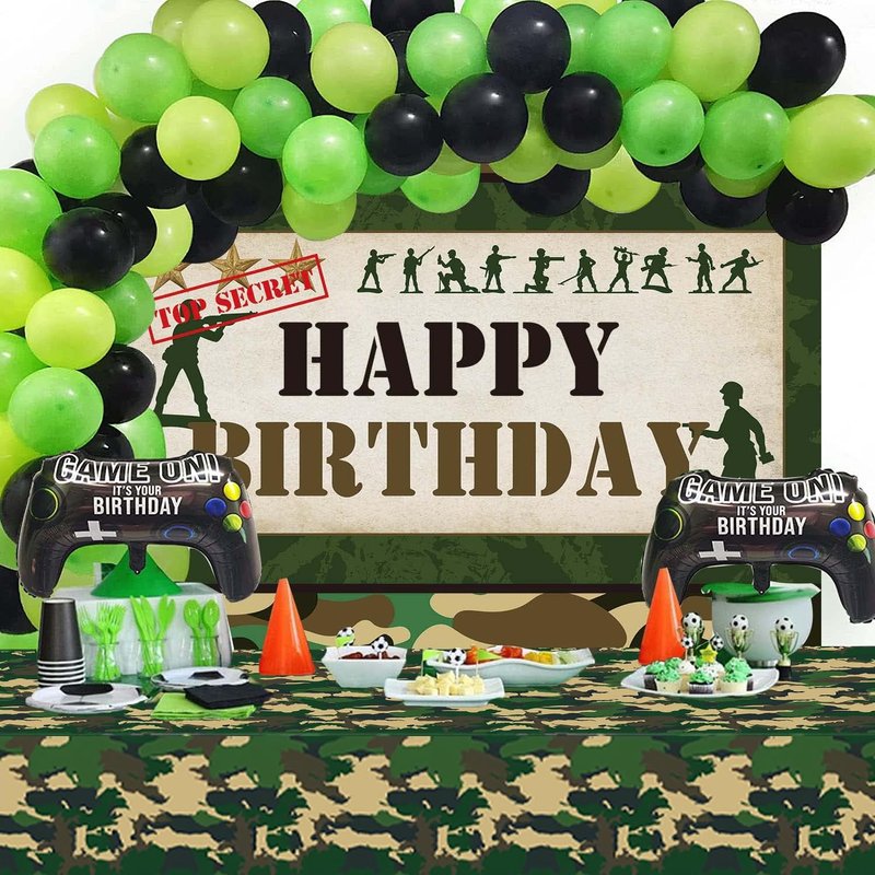 Soldier Theme Happy Birthday Backdrop and Camouflage Tablecloth