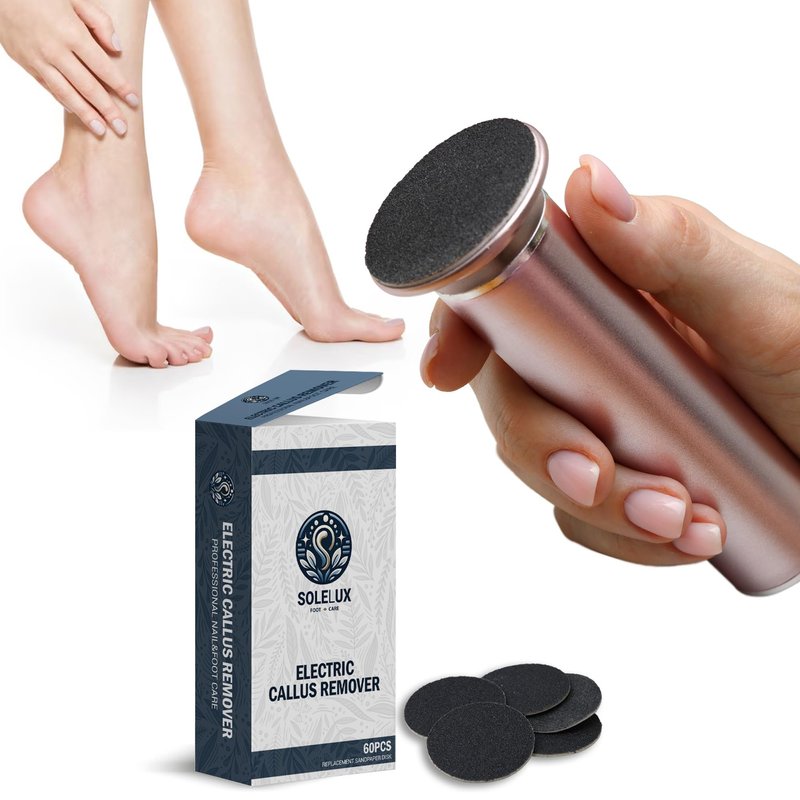 Equipped with a potent motor and precision head, SoleLux electric foot file callus remover for feet effortlessly banishes dry, rough skin, leaving your feet luxuriously soft and silky. Bid farewell to manual scrubbing and embrace effortless foot care at its finest! The foot grinder in our kit gently but effectively smoothes away hard, rough skin for softer feet.