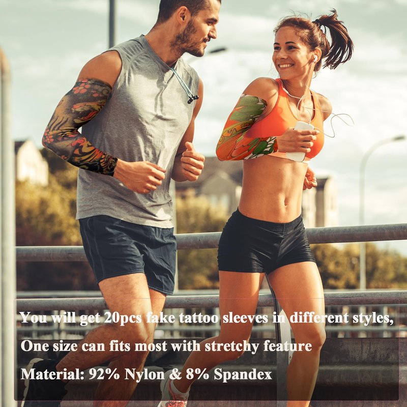 - PACKAGE INCLUDING: 20pcs temporary tattoo arm sleeves in different styles. Patterns are random.Enough varieties to meet your different wearing needs.92% nylon and 8% spandex,stretchable fabric material. Easy to wash, machine washable, do not wash with hot water, recommended to dry.