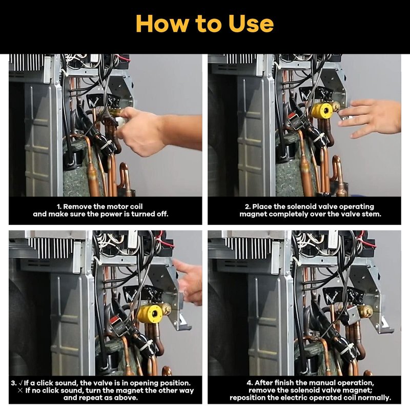 - 【Convenient Helper】No need to dismantling the inside of the machine, just open the casing of the machine, use this solenoid valve magnet tool, then manually open solenoid valve for troubleshooting / maintenance of system / temporary operation / manually reversed the reversing valve.