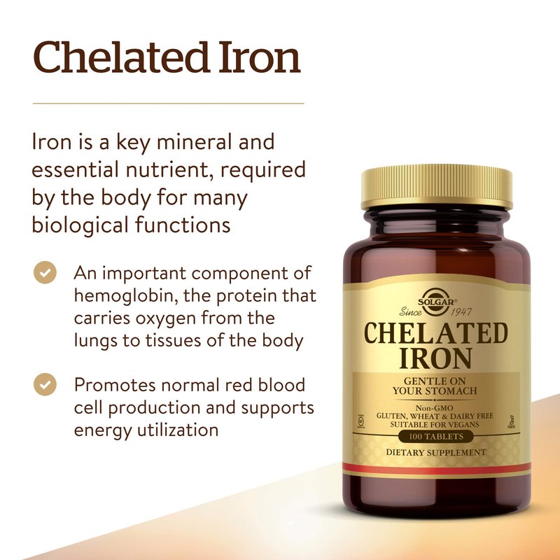 Solgar - Chelated Iron Tablets 100 Count, Promotes red Blood Cell Production & Produces Healthy Energy - 2 Pack