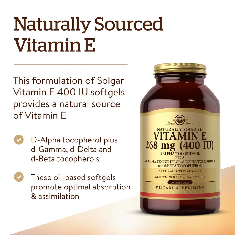 Solgar Vitamin E 268 mg (400 IU), 250 Mixed Softgels - Natural Antioxidant, Skin & Immune System Support - Naturally-Sourced Vitamin E - Gluten Free, Dairy Free - 250 Servings