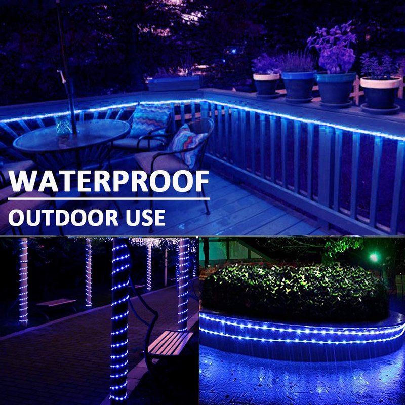 - [Waterproof] The PVC tube keeps the light away from water splashing, Great for indoor or outdoor embellishment. (NOTE: Only the rope lights are waterproof, the controller-box (infrared receiver) and the power adapter are not waterproof which should be well-protected and cannot be submerged by water or rain)