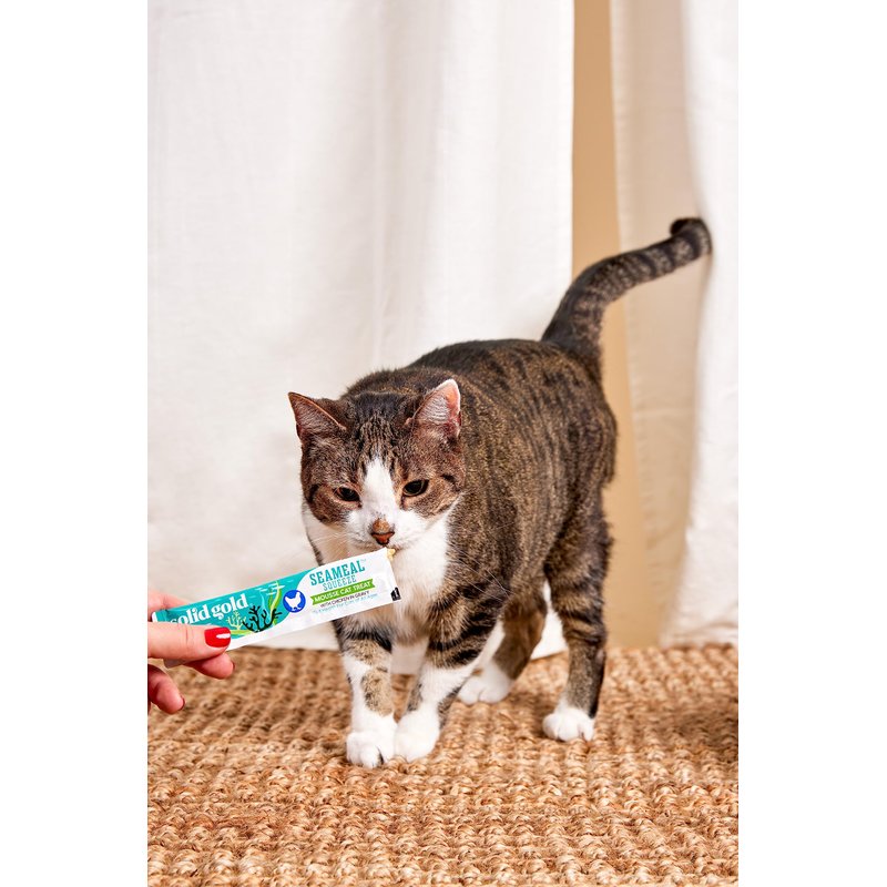 • Squeeze Treats for Cats with Health Benefits - Solid Gold SeaMeal Squeeze lickable cat treats are easy to feed with fiber-rich seaweed for digestive gut health and flaxseed for healthy skin and coat