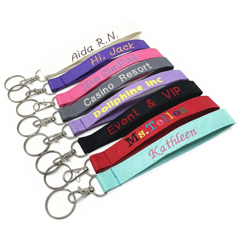 Solid Poly Fabric Customed Wristlet Key Fob keychain with Personalized Monogrammed