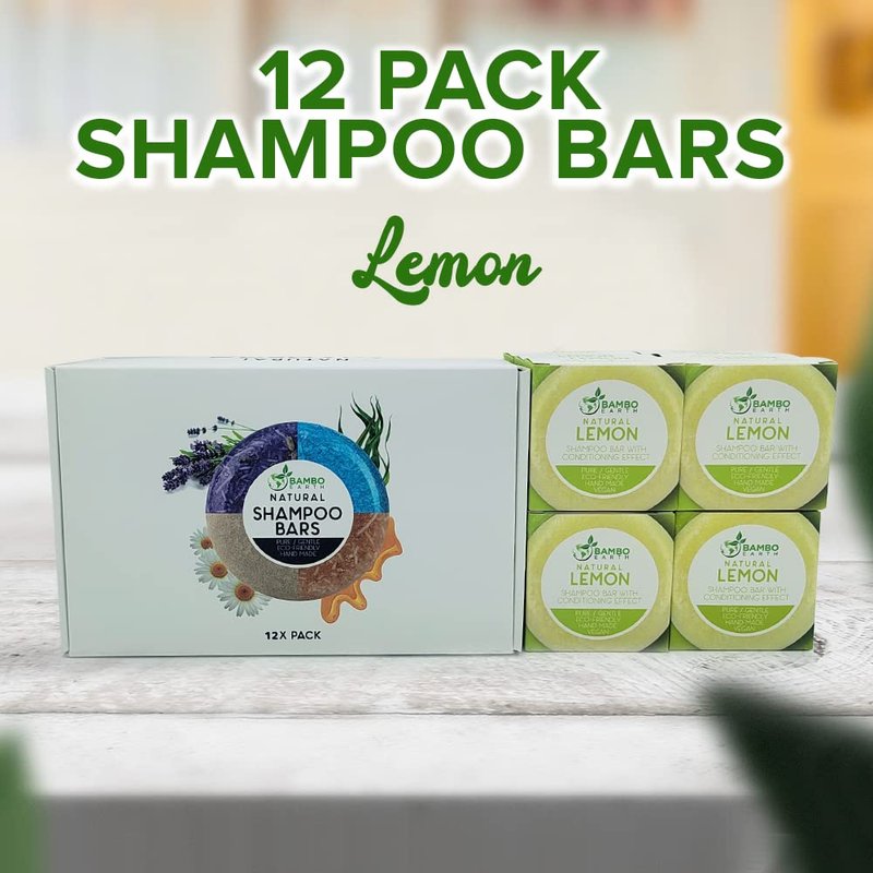 Solid Shampoo Bar And Conditioner Effect Hair Soap – 12 Pack Natural Shampoo Bars For Hair With Plant Based Essential Oils And Eco Friendly Zero Waste Biodegradable Packaging (Lemon Pack Of 12)