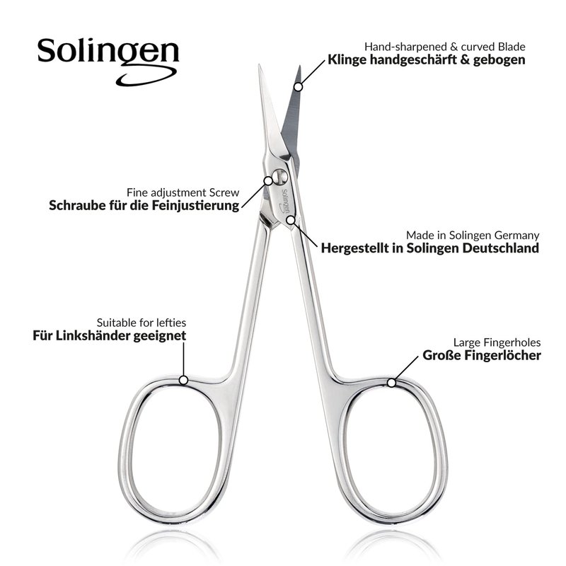 Solingen Scissors - Cuticle Scissors Germany - Curved Blade, Nail Scissors Germany - Pedicure Beauty Grooming Kit for Nail, Eyebrow, Eyelash, Dry Skin - Nail sicssors