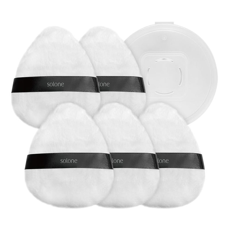 Solone 5Pcs Soft Powder Puff Makeup Sponge With Case - Perfect for Loose and Setting Powder, Foundation, Concealer; Easily Conforms to the Face and Reusable