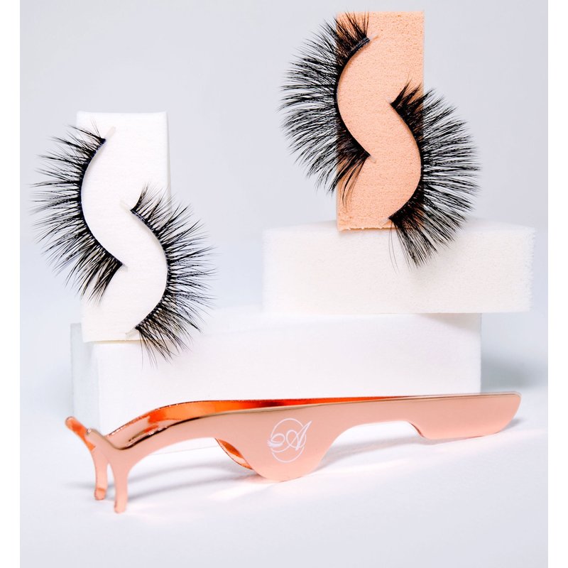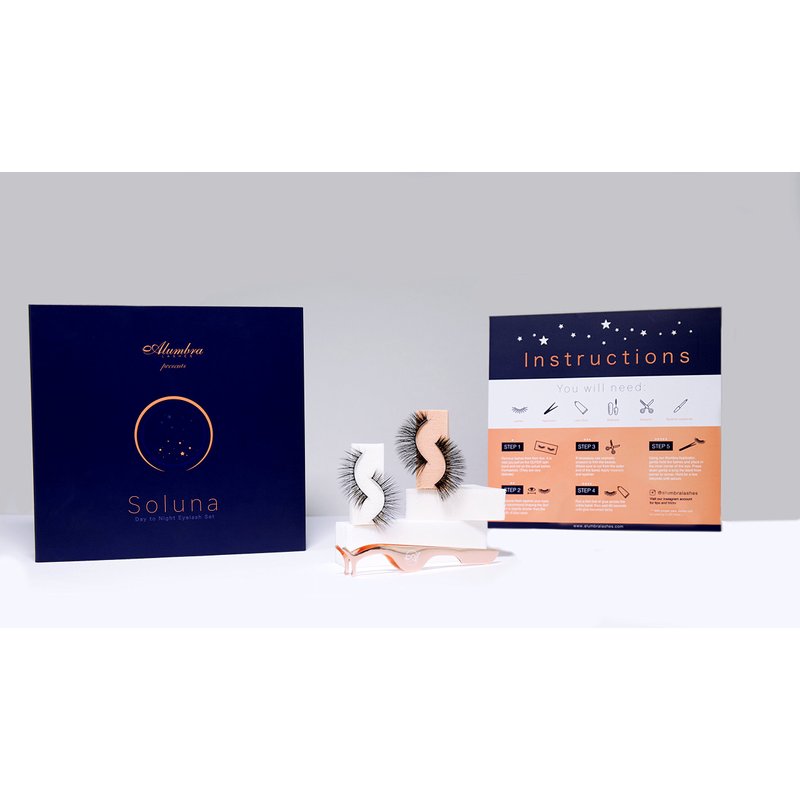 Soluna Reusable Luxury False Eyelashes Pack by Alumbra Lashes | 100% Handmade, Soft & Natural Looking Black Fake Strip Lashes with Rose Gold Tweezer & Decorative Box | Non-Magnetic | 2 Pairs