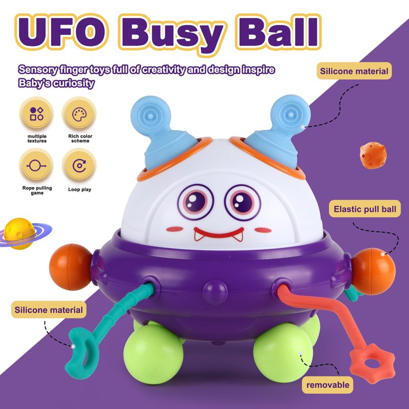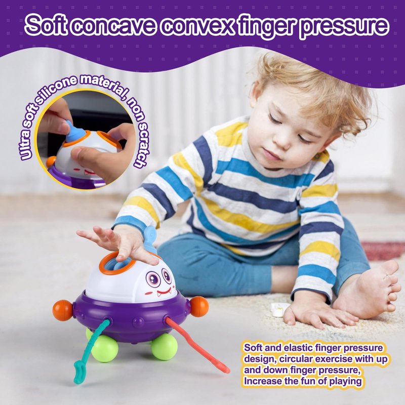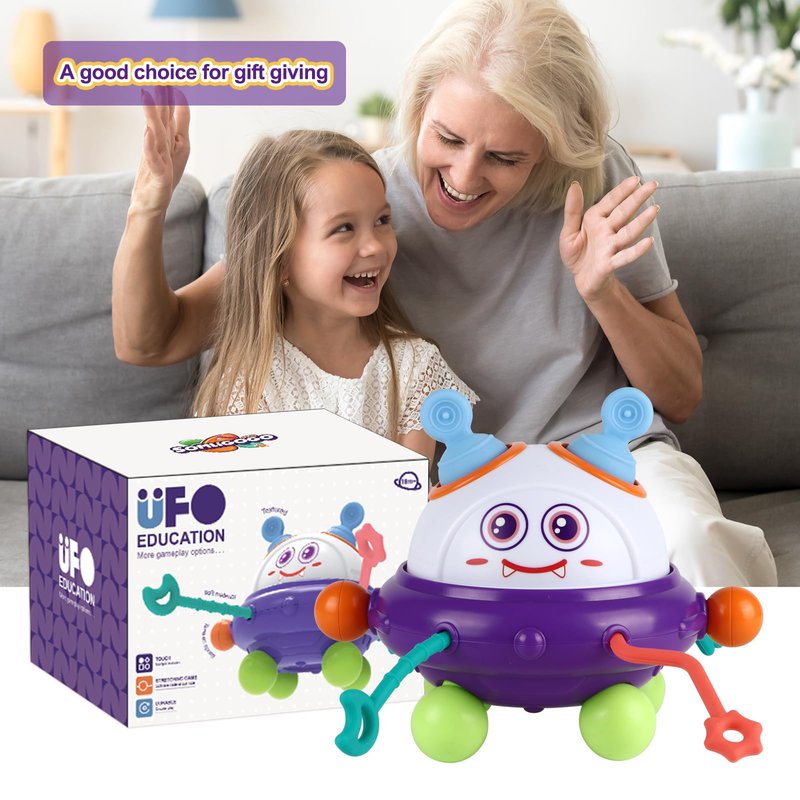- [Baby Sensory Toy]This baby toy has a unique monster UFO shape, rich and bright color combination, 5 different functional design. It provides sensory stimulation and promotes the development of fine motor skills and hand-eye coordination. It is designed with engaging visual effects and provides a visually appealing play experience for young children. Perfect sensory toy for toddlers 1-3.