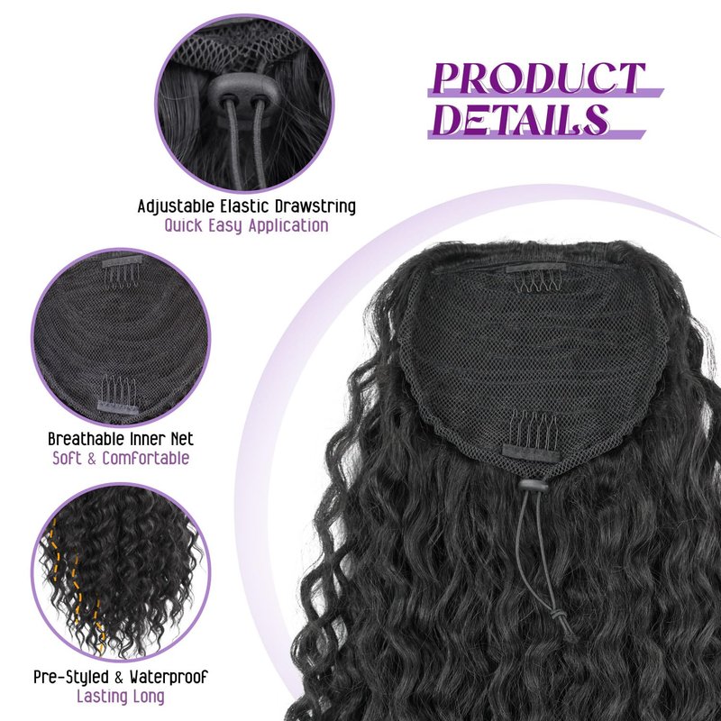 - Easy-to-Wear and Beginner-Friendly: Our curly ponytail extension is ultra beginner-friendly and easy to wear. The breathable inner net and invisible comb make it lightweight and secure, while the drawstring hair type allows you to achieve a new style in seconds, saving you time and stress.