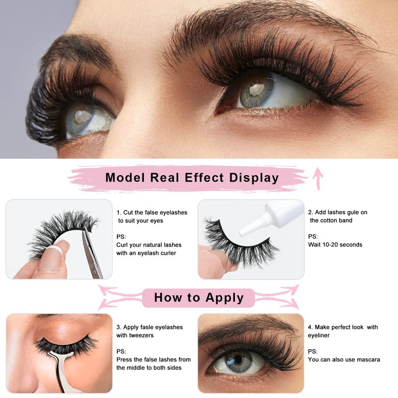 - 20mm Full Lashes: The length from the inner corner to the tail of the eye is 10-16-20mm, with a little cat's eye effect. In a bar or party, wear it, and you will be the focus of the audience.