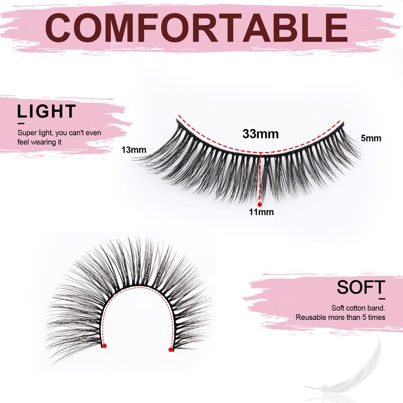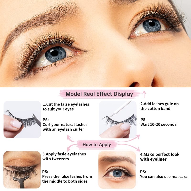 - Comfortable: This natural lashes is made of high-quality faux mink hair and thin cotton band. It is so soft and light that you can't even feel wearing it.