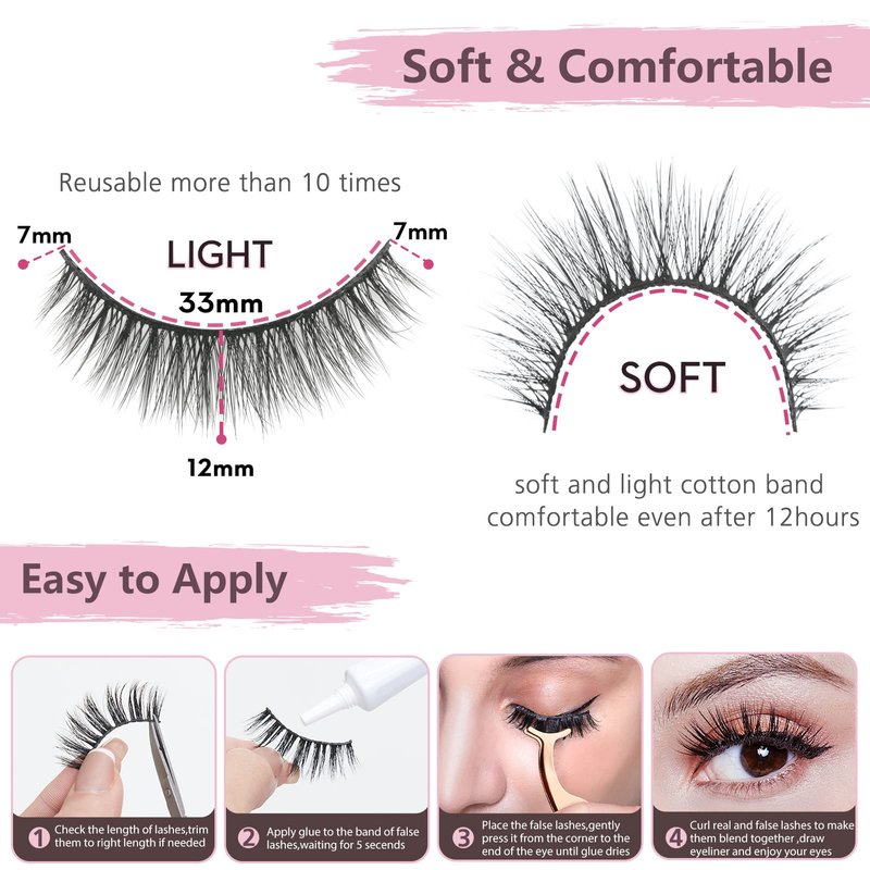 - Comfortable and lightweight: Our 3D faux mink lashes are designed for ultimate comfort. Featuring a soft cotton band, our lashes are so soft and light that you can wear them for more than 12 hours without feeling any discomfort.