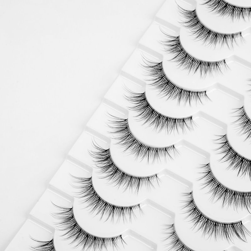 SONAFEEL Natural Lashes Wispy Cat Eye - Lightweight Reusable Clear Band Strip Lashes, 10 Pairs Pack, Faux Mink False Eyelashes Natural Look