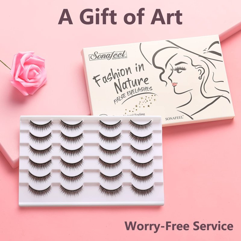 SONAFEEL Short False Eyelashes Natural Look Wispy Strip Lashes Pack 11mm 12Pairs Small Lashes 3d Mink Eyelashes Reusable Lightweight Short Natural Eyelashes