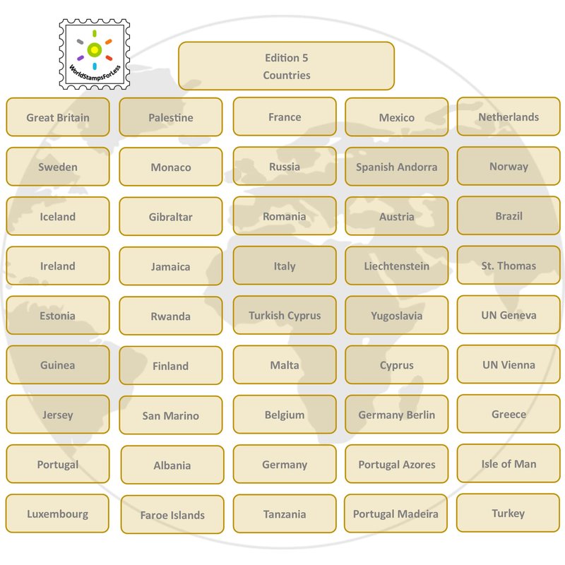Sondeli Worldwide Stamp Collection Mint (MNH), Edition 5, 51 Full Sets from 45 Different Countries