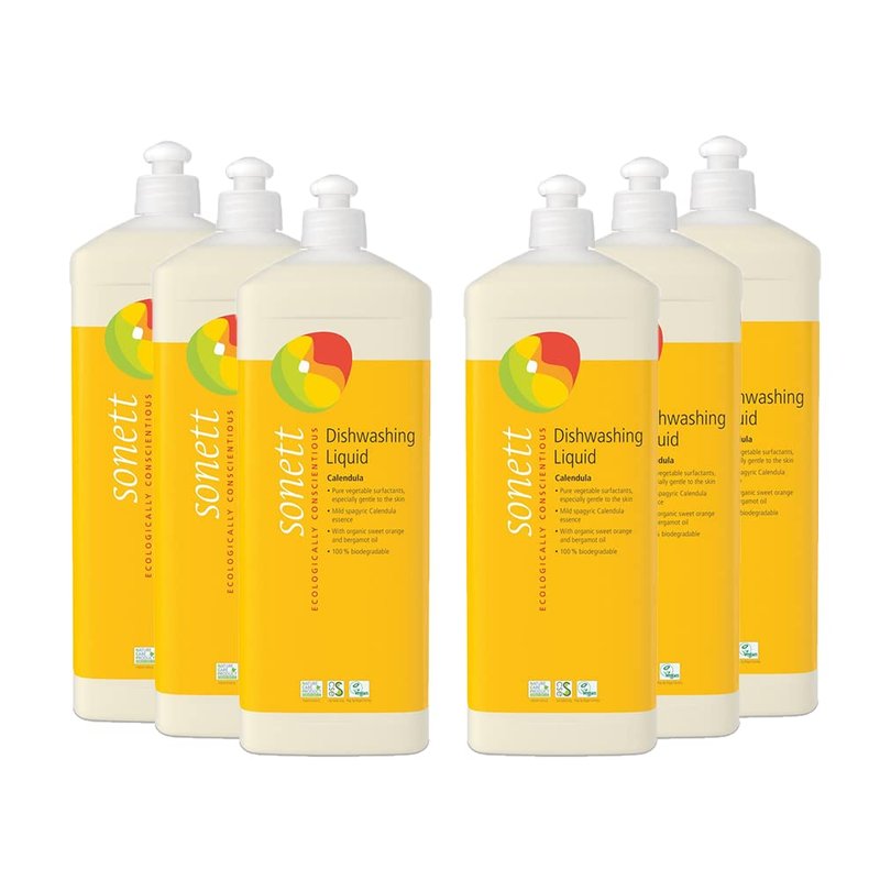 - PRODUCT USAGE - Add 1 dash (approx. 3 m l / 5 l of water) to the dishwashing water or apply straight onto the (dishwashing) sponge. The mild spagyric organic Calendula essence, together with a combination of hypoallergenic surfactants and the warm fragrance of sweet orange from organic cultivation, give Sonett Dishwashing Liquid Calendula its very special character.